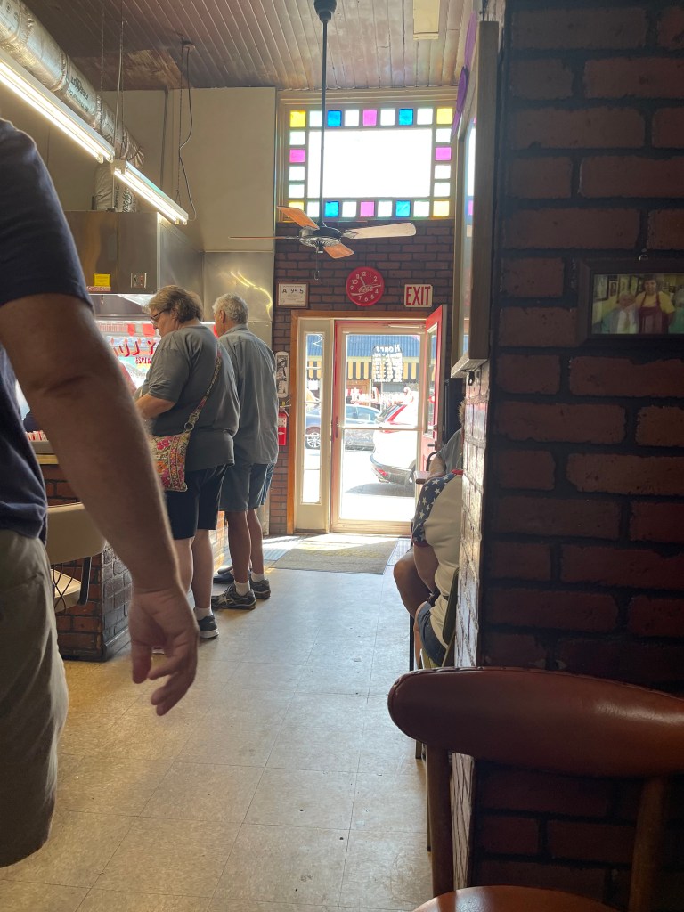No matter what you “get a hankering” for there are quite a few nostalgic diners and sweet shops to choose from. The popular Snappy Lunch diner located on Main St. began offering lunch to Mount Airy workers in the 1920s and is still open today continuing to serve their famous pork chop sandwich made of a tenderized fried pork chop, coleslaw, bun and your chosen condiments. I don’t normally go for coleslaw on my sandwich but braved up and gave it a try. It did not disappoint and was delicious! Ryan had his normal choice of all American hamburger. If breakfast is more your thing they open at 5:45 am Monday-Saturday. Beware closing time is 1:45 pm except Thursdays and Saturdays which is 1:15 pm. Farther down on Main St. you will find Barney’s Cafe and Mi Casa if you prefer Mexican cuisine. Walkers Soda Fountain offers burgers, hot dogs, fries, phosphate soda, old fashioned malts and shakes with an old soda shop atmosphere. We stopped in for a milk shake which hit the spot in the heat of the day. If you like pie then don’t pass up Miss Angels Heavenly Pies! There are 45 different pies to choose from in many creative varieties from apple all the way to oreo to pecan pumpkin to strawberry rhubarb to moonshine apple ect. Don’t want a deep dish 9 inch? There are also 5 inch cutie pies and other delectable deserts from cake to cookies to turnovers and more. You’ll also be delighted to know that fruits from Miss Angel’s farm are used to make the pies. Opie’s Candy Store nearby offers new and old variety candies for purchase by the pound.