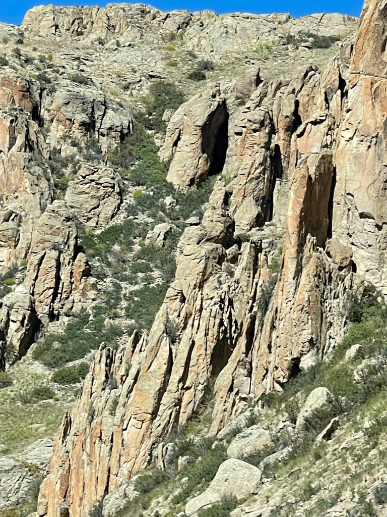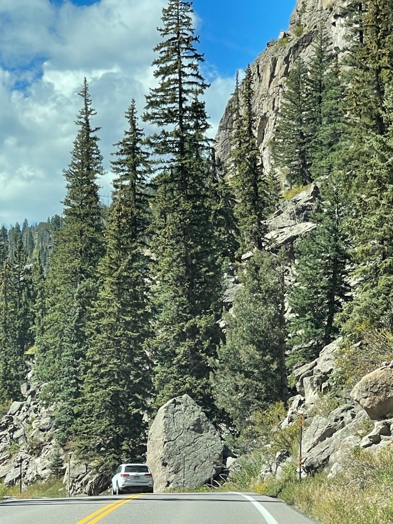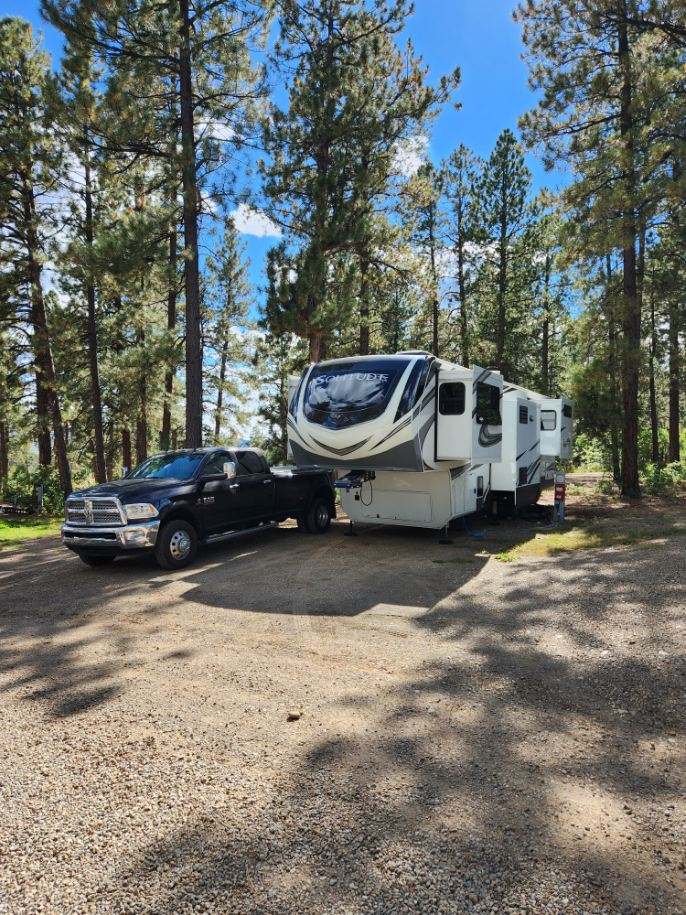 After acclimating a week in Alamosa we headed on Hwy 160 through the Rio Grande National Forest to Mancos Colorado for a stay at Echo Basin Cabin and RV Resort. The drive was one of the most beautiful we have taken even with the 5- and 9-mile steep grades and curves. I kept myself busy taking pictures and Ryan was very cautious taking the curves slow. Echo Basin was a much needed and welcome retreat in the foothills of the San Juan Mountains tucked in a valley between three mountain ridges with plenty of tall shade pines, an onsite restaurant with an excellent cook, and putting greens. An elevation of 7800 feet provided clear skies for star gazing at night. All lights out at 10:00 p.m. was strictly enforced and welcomed. Luckily there wasn’t a burn-ban, and we were able to have fires in the cooler evenings.