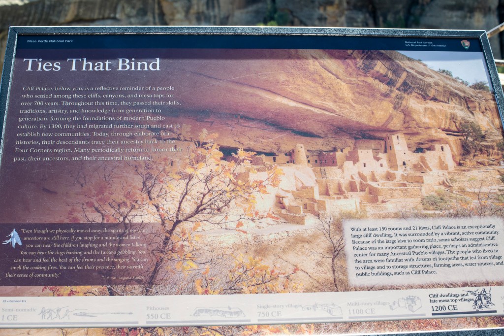 Visiting Mesa Verde National Park was a simple short 13.5-mile drive to the entrance. The drive inside the park was a bit of a different story. The drive isn’t hard but the steep abundance of curves that are sometimes unrailed with very deep drop offs will keep you on toes. You should be fine taking it slow and obeying caution signs. Although the views are absolutely gorgeous, if you have a fear of heights this is one of those times you might want to let someone else drive. There are several places made for pulling off the road to get plenty of pictures or take a rest. There are six cliff dwellings throughout the park, all needing a purchased tour except for Step House on Wetherill Mesa. The hikes into and out of the dwellings range in difficulty and usually require climbing ladders of different heights. Cliff Palace is ¼ mile hike with 5 ladders ranging from ~5 to 10 feet in height. Tickets are $8.00 per adult. Being that Cliff Palace was one of the easier hikes we purchased tickets online the night before. On our way to the meeting area, we made a wrong turn and were going to be late so we decided to stop at the ranger station to stretch our legs and get a view of one of the other dwellings. Afterward we made our way to Cliff Palace and took a very short hike down to the viewing area to get a good perspective of it. We couldn’t take the hike of course due to our tardiness and my nerves (wink, wink). As I have mentioned before heights aren’t my thing and I felt I had pushed myself enough out of my comfort zone. Unfortunately, our trip was cut short when I miss stepped off the side of the path and rolled my ankle on the way back from the viewing area. Of course, I stubbornly had to get the national park sticker for our collector’s passport book, so Ryan helped me hobble into the information/gift shop on the way out of the park.