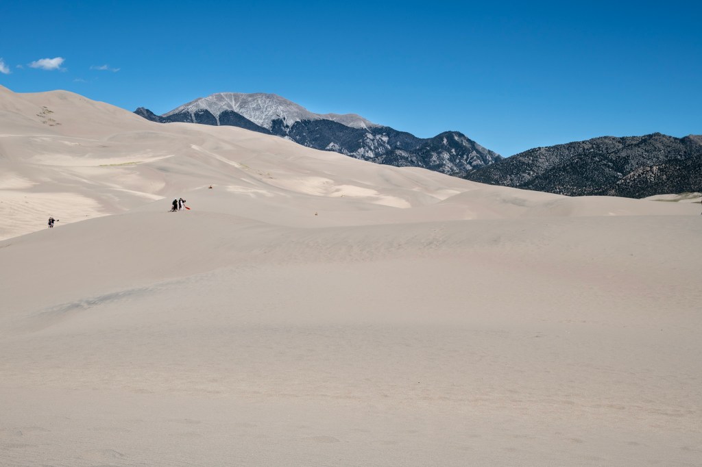 Colorado has diverse landscapes that include grasslands, mesas, buttes, Rocky Mountains, peaks and even sand dunes. Great Sand Dunes National Park and Preserve situated in the southern central area of Colorado and nestled next to the Sangre De Cristo Mountains encompasses 7 zones of life: dunefield, sand sheet and grassland, salt-encrusted plain, streams and wetlands, alpine tundra, subalpine, and montane forest. These 7 zones provide interesting and distinguishing landscapes all in one park for learning, hiking, sand boarding, 4-wheel driving or just relaxing while taking in the views.