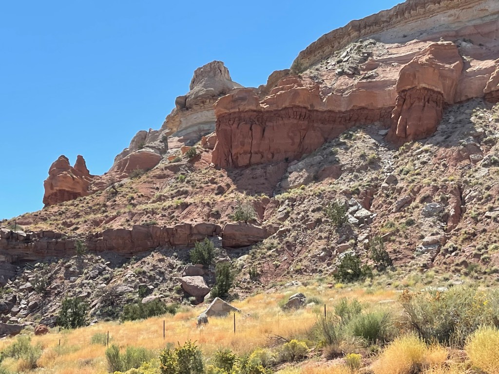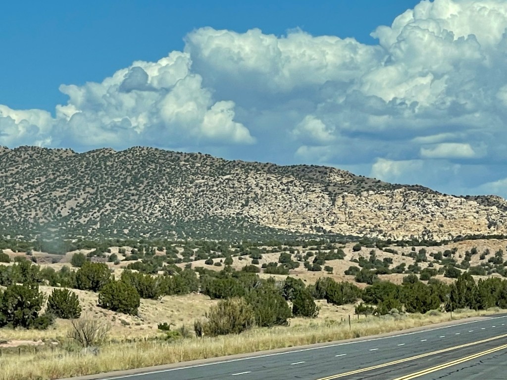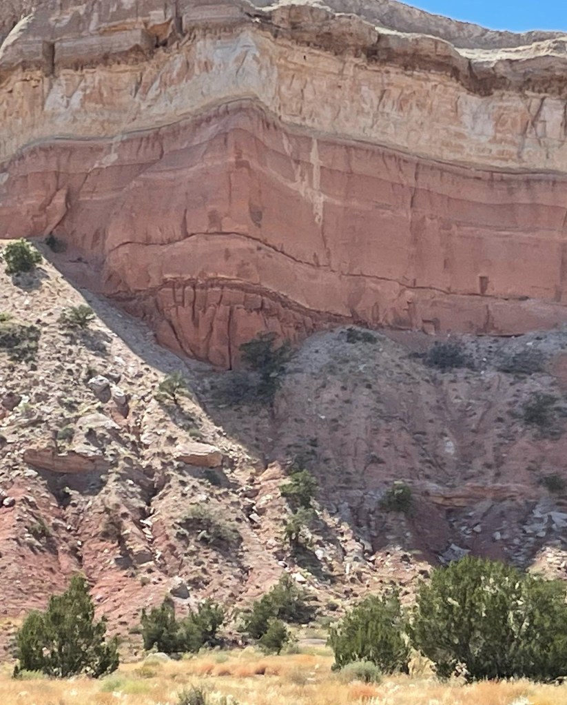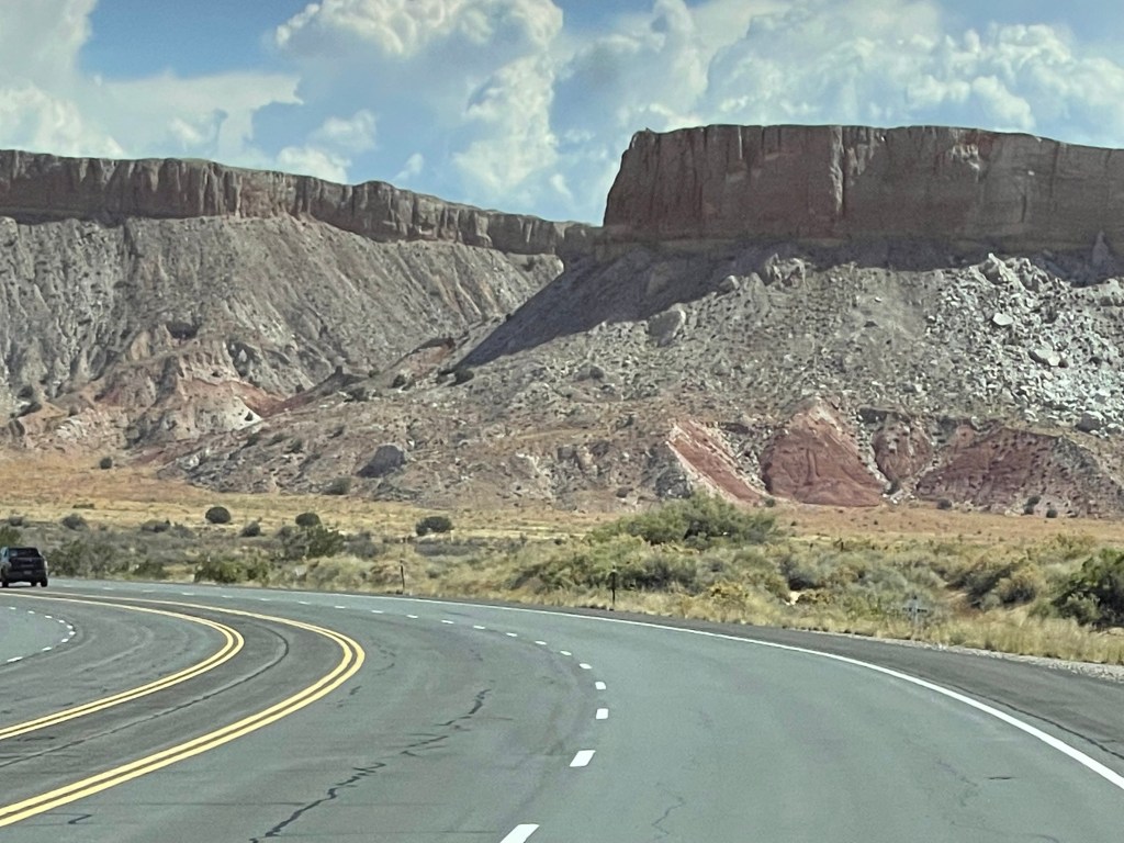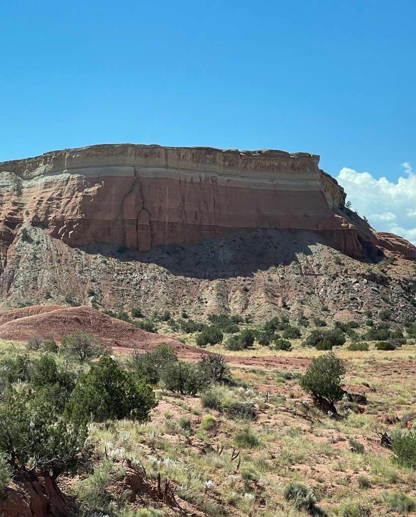 From Colorado into New Mexico highways blanketed in big blue skies bordering rolling tumbleweeds and desert bushes lead into rock formations made of colorful horizontally striped variations of sandstone, varied elevations, pockets of alpine forests or some combination of such. The beauty of the drive quickly becomes an existential experience overwhelming any destination goals. If Albuquerque isn’t currently one of your destinations, you may want to consider it. It’s a city much like any other city except for its distinct culture, food and magical places. Pueblos who settled the area during the 13th century along with later invading Spaniards have inspired flat roof houses and buildings lined in colorful stucco resembling older adobe mud coverings (1). Thick ornate wooden doors welcome one in at the end of pathways through textured rock gardens sprinkled with desert cacti and maybe a palm or mesquite tree. Compared to the east coast there isn’t a lot of green in Albuquerque but its beauty lies in the Manzano and Sandia Mountains visible from the mid to east side of the city. If you would like to visit the Sandia Peak from Albuquerque the Sandia Peak Ariel Tramway is a good option. The ascend offers excellent views so I am told and takes 15 minutes to reach the top where you can dine at TEN 3 restaurant if you have the appetite. Speaking of appetites and green. Be prepared to have an answer to a common question when dining in the area. Green or Red? If you would like a mix of both chile sauces ask for “Christmas”. I was told the longer the pepper is stored, the hotter it gets. I tried vegetables cooked in green sauce naively assuming green was the safer choice, and was surprised how spicy it was. The flavor was wonderful and then a minute later my mouth felt like a blow torch! Every time I opened it to chat with our dinning friends I imagined spewing out a blue flame. I managed to power through. LOL From then on I asked for Christmas on the side. Albuquerqueians have a great pride for and love of their chile! There is even a yearly Great New Mexico Chile Taste-Off usually in or around October. Chile growers and others bring their recipes from all over New Mexico to Socorro (about an hour outside of Albuquerque) to compete for the “Best Chile” sauce title. If you can’t make it to the chile cook off event the Farmers Chile Market offers many different varieties of chile including the premium hatch chile produced in Hatch Valley. (Note: Hatch chile season is from the beginning of August to the end of September.) If you need a break from spicy fares the Range Cafe in Bernillio is an excellent choice! The country fried steak offered gives the best southern cook “a run for their money”. Move over Ms. Patty! Although you can find the breakfast burrito at many restaurants it is said to have originated at the Balloon Fiesta in the 1970s (2) and is a tasty and filling option if you are attending a morning ascension show.