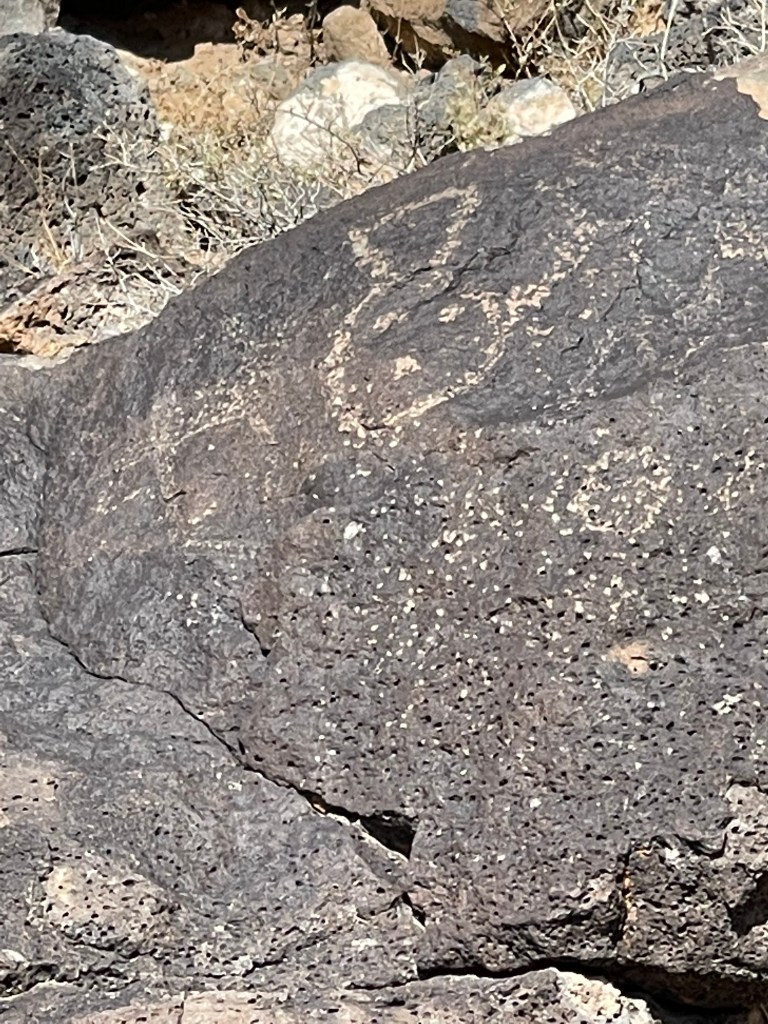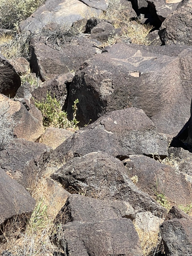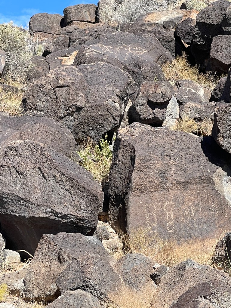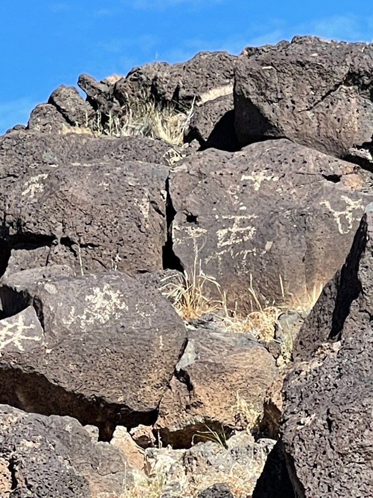 We stayed at the KOA in Bernillio about 20 minutes from the field. Cactus Brewing Company offering beers and surprisingly good food was a five minute walk through the back corner of he park. Best of all we were able to bring our dog Rita and listen to some live music! We would definitely stay here again! The weekend after attending the balloon fiesta we decided to take a short hike on the Piedras Marcadas Canyon Petroglyph Viewing Trail at northern most area of Petroglyph National Monument. It is a 1.5 mile trail with 7 petroglyph viewing areas. Some of the glyphs are quite high and are hard to view without binoculars. Even though we didn’t go prepared we still saw quite a few petroglyphs of all different sizes. There is no shade and in the afternoon it starts getting hot rather quickly. Due to the heat we turned around close to the 5th viewing area and headed back to the truck. Next time we visit we will choose to go early in the morning and bring a light weight umbrella. Take plenty of water and be sure to visit the visitors center to get good historical information and trail recommendations. Pets allowed except on Boca Negra Canyon trail. After our hike we visited Old Town which has quaint shops and interesting architecture. It is a touristy area and can get quite busy on the weekends. While there we delightfully strolled upon a car show displaying old muscle cars. We ventured into a tourist shop, bought the T-shirt and grabbed some pizza for lunch. Would we go there again? We are already planning on it!