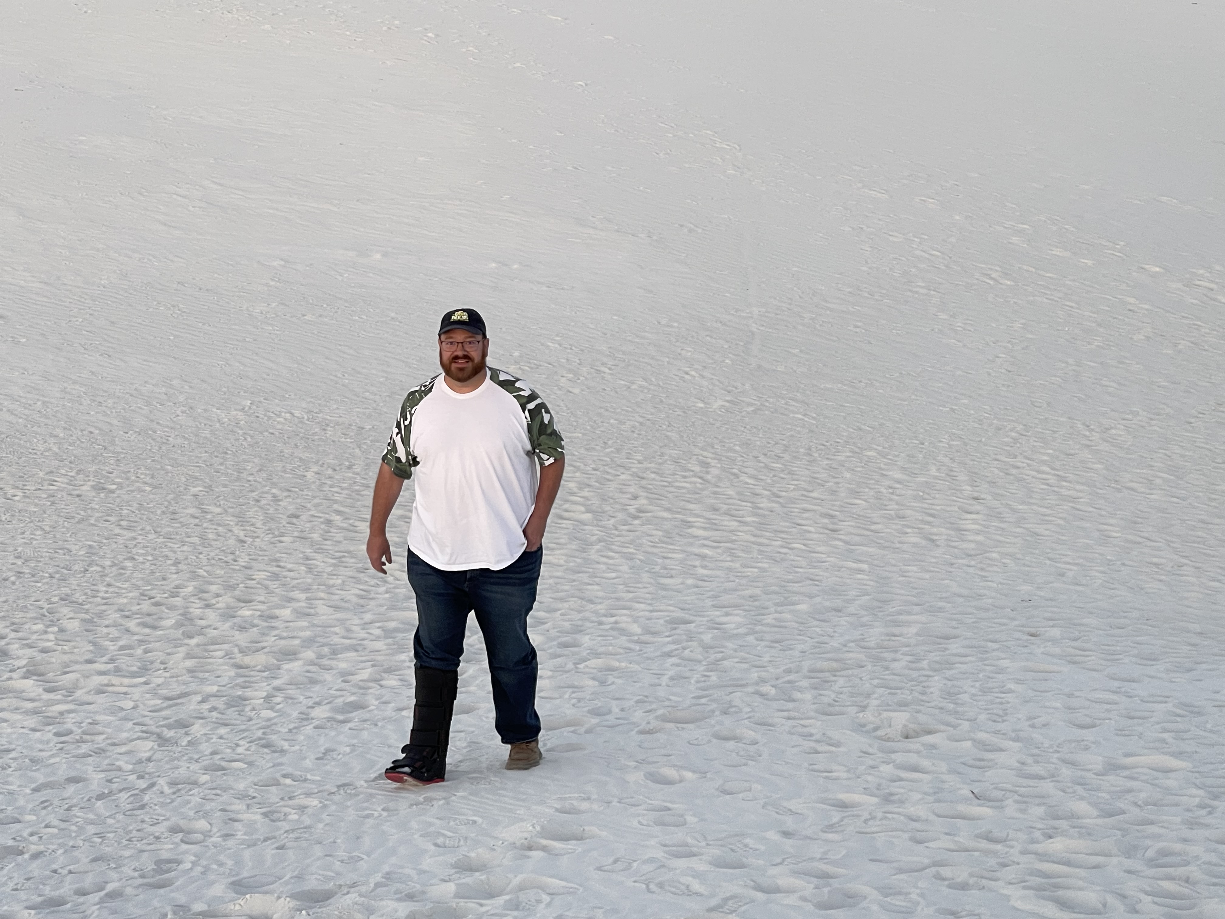 If you keep up with the blog you know Ryan had to have several surgeries in El Paso Tx after falling off the ladder installing a new awning, breaking his leg and ankle while we were in Roswell NM. After several months of healing and doctors releasing him to walk boot assisted we were eager to get out and enjoy nature again. Our friends we met while rv camping in Colorado decided to stay in Las Cruces NM which was about 35 minutes from our Anthony Tx. location. During February we all decided to get together and visit Valley of Fires Recreation Center and White Sands National Park in New Mexico.